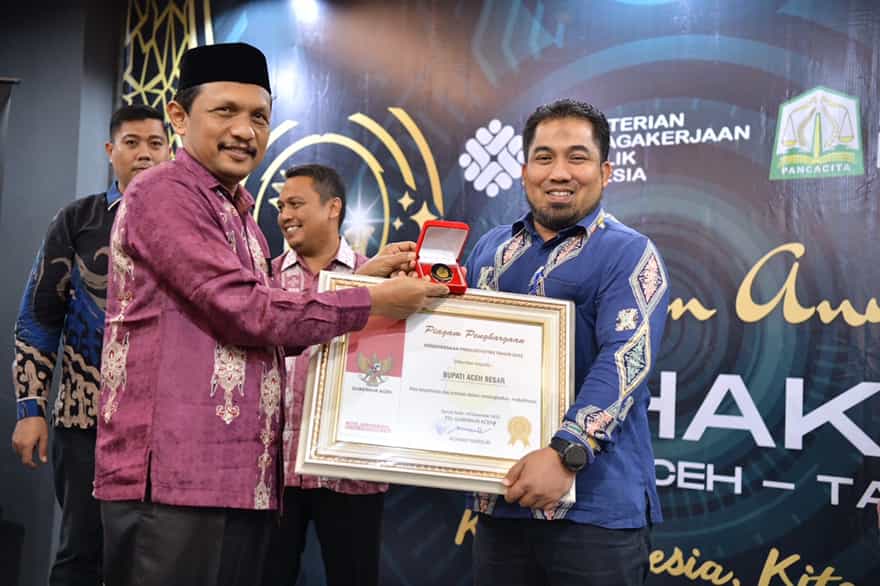 possceh.com, Kota Jantho – Penjabat Bupati Aceh Besar Muhammad Iswanto, bersama Pj Bupati Bireuen dan Pj Wali Kota Banda Aceh, menerima Lencana Produktivitas diberikan dari Pemerintah Aceh.
