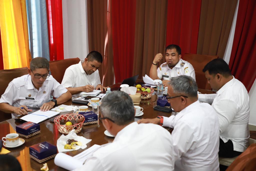 posaceh.com, Kota Jantho – Penjabat (Pj) Bupati Aceh Besar Muhammad Iswanto, S.STP, MM bersama Sekretaris Daerah (Sekda) Aceh Besar Drs. Sulaimi M.Si, didampingi Asisten l Sekdakab Aceh Besar Farhan AP dan Asisten lll Sekdakab Aceh Besar Jamaluddin, SSos MM dan Organisasi Perangkat Daerah (OPD) menggelar rapat untuk mengenjot dan memacu peningkatan Pendapatan Asli Daerah (PAD) yang berlangsung di Dekranasda Aceh Besar, Gampong Gani, Ingin Jaya, Aceh Besar, Rabu (14/06/2023)