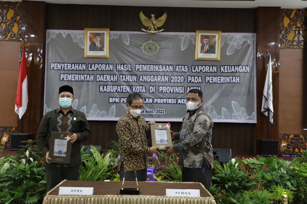 Penyerahan predikat WTP ke-9 itu dilakukan oleh Kepala Badan Pemeriksa Keuangan (BPK) Perwakilan Aceh Arif Agus SE MM Ak, CPA, kepada Bupati Aceh Besar Ir H Mawardi Ali yang diwakili Sekda Aceh Besar Drs Sulaimi MSi dan Ketua DPRK Aceh Besar Iskandar Ali SPd MSi di aula kantor BPK RI Perwakilan Aceh, Jumat (30/4/2021).