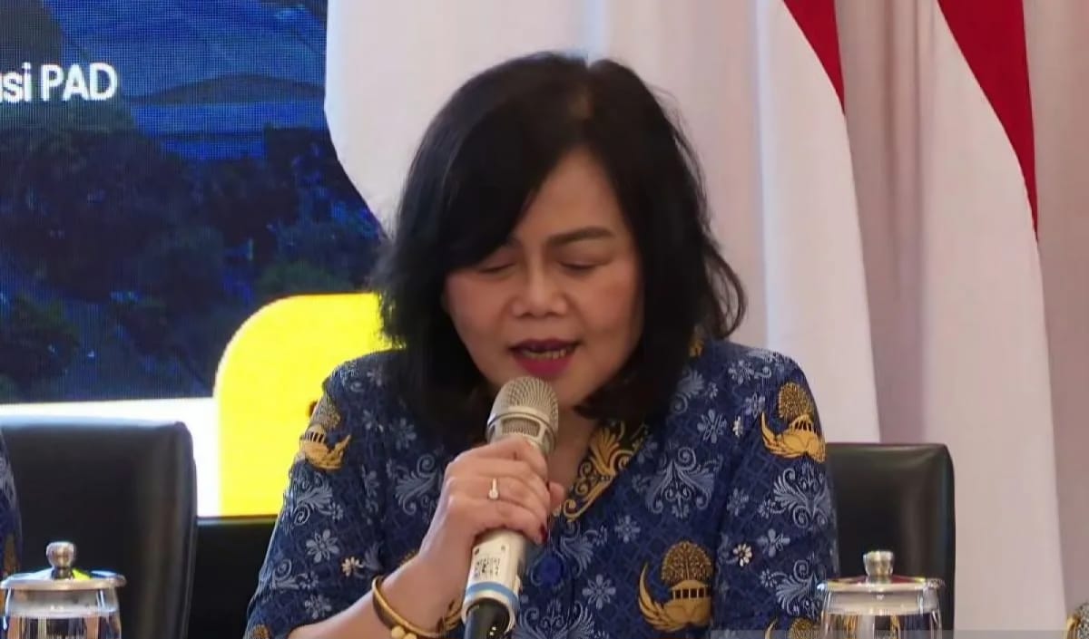 Kepala Badan Pendapatan Daerah (Bapenda) DKI Jakarta, Lusiana Herawati dalam konferensi pers di Balai Kota Jakarta, Jumat (17/4/2026). FOTO/ANTARA