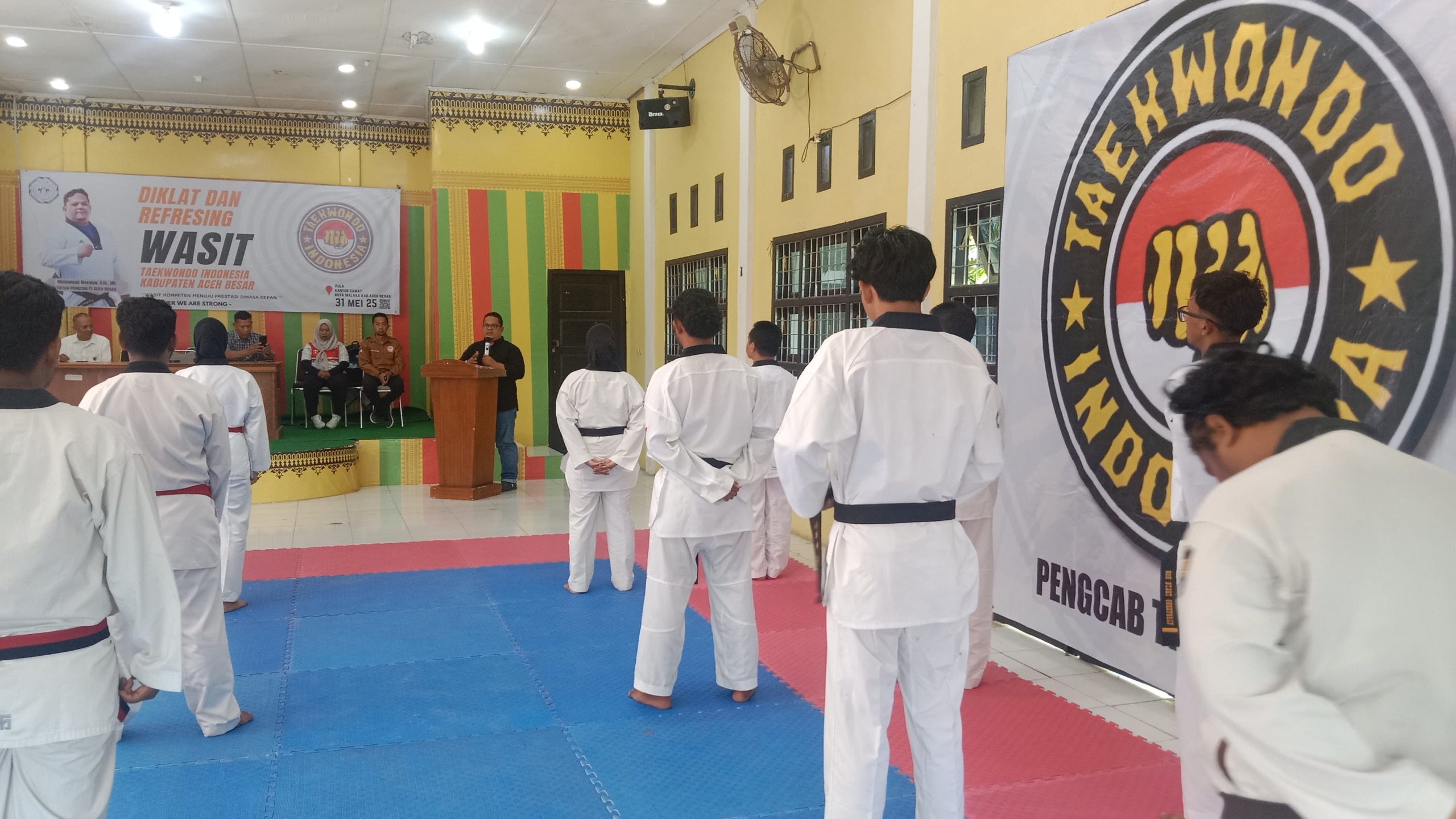 posaceh.com, Kota Jantho – Pengurus Cabang Taekwondo Indonesia (Pengcab TI) Kabupaten Aceh Besar menggelar Pendidikan dan Pelatihan serta Refresing Wasit di Aula Kantor Camat Kuta Malaka, Sabtu (31/05/2025)