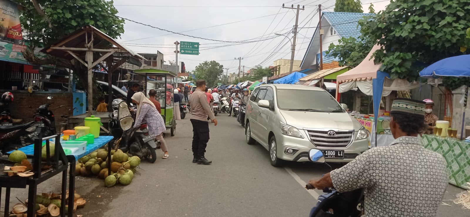 Adapun personel Polsek Kota Sigli ditugaskan untuk memastikan kelancaran aktivitas di lokasi jalan di Pasar Pante Teungoeh, Kecamatan Kota Sigli, Kabupaten Pidie.