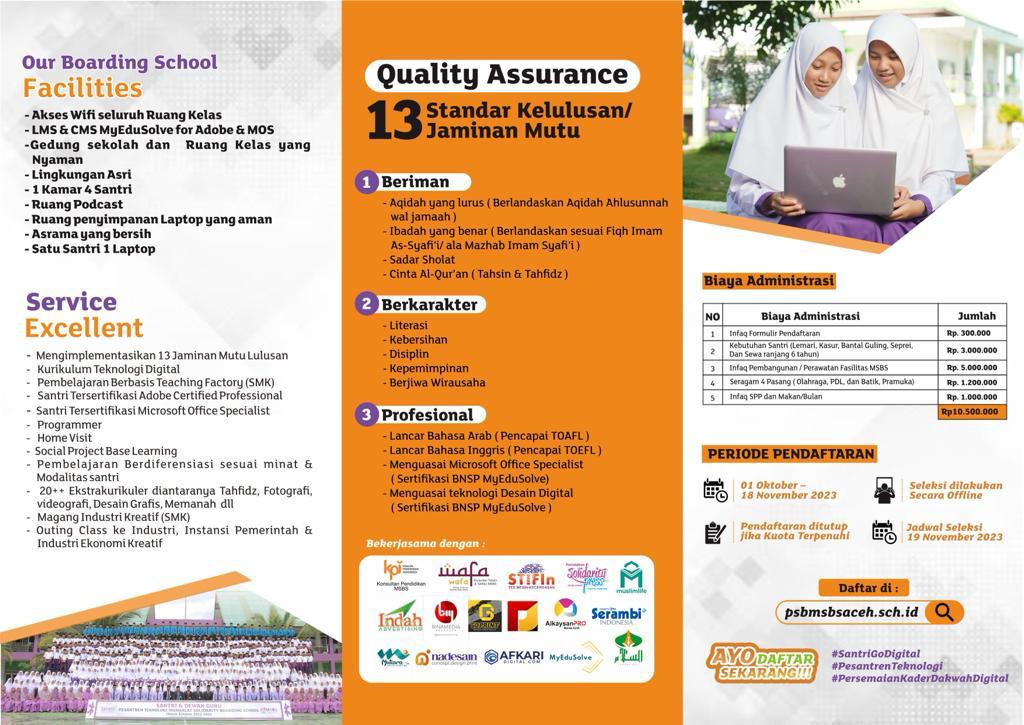 “Pendaftaran sudah kita buka mulai bulan ini, bagi wali santri yang ingin mendaftar silahkan mengunjungi psbmsbsaceh.sch.id untuk mendapatkan informasi lebih lanjut,” katanya, Selasa (23/10/2023).