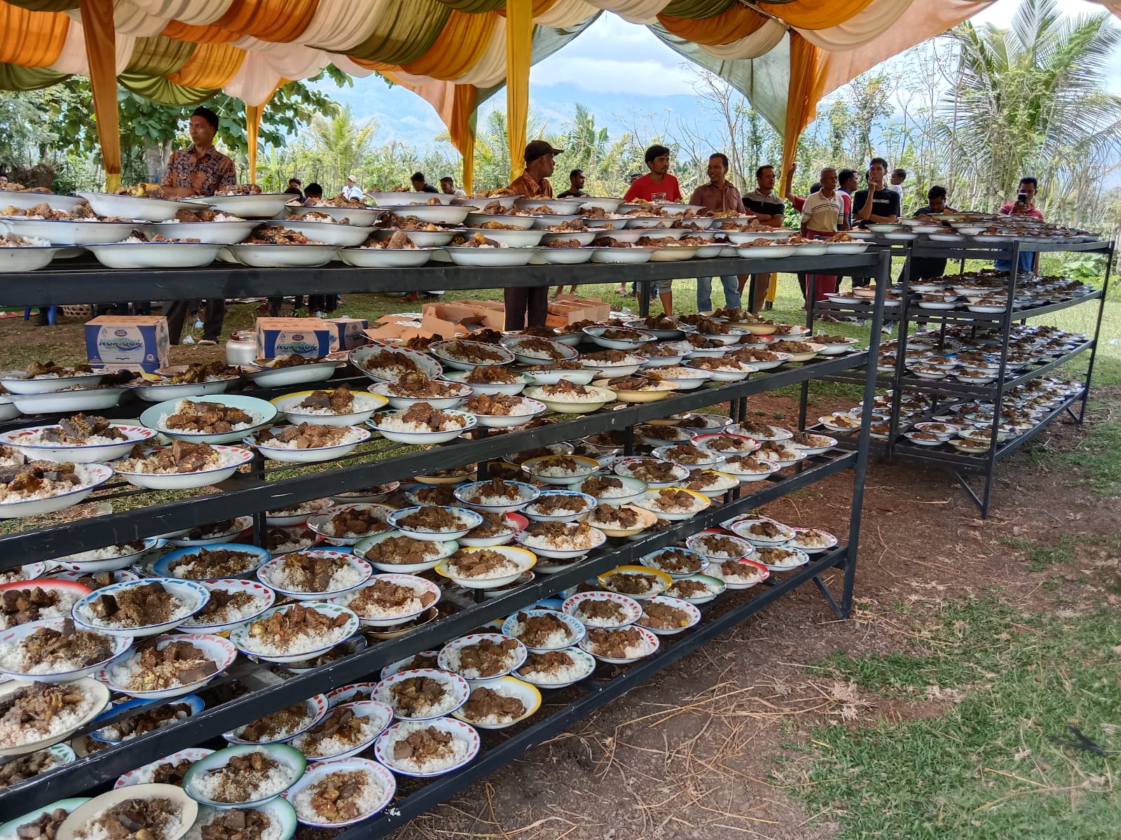1000 piring nasi yang tersedia dalam Khanduri Blang di Gampong Baet Lampuot, Sukamakmur, Aceh Besar, Kamis (9/11/2023).