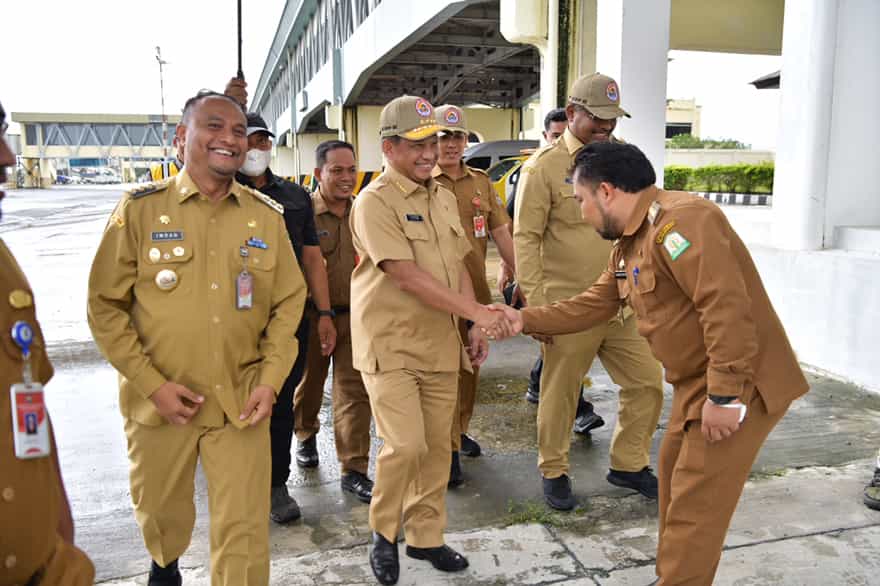posaceh.com, Kota Jantho – Penjabat (Pj) Bupati Aceh Besar, Muhammad Iswanto SSTP MM mendampingi Pj Gubernur Aceh Achmad Marzuki, bersama unsur Forkopimda dan Sekda Aceh Bustami Hamzah, menyambut kedatangan Menteri Koordinator Bidang Politik Hukum dan Keamanan (Menkopolhukam) RI Mahfud MD dan Menteri Dalam Negeri (Mendagri) Muhammad Tito Karnavian, di VIP Bandara Internasional Sultan Iskandar Muda Blang Bintang, Rabu (21/12/2022).