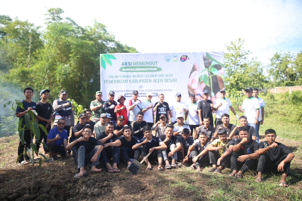 posaceh.com, Kota Jantho – Penjabat (Pj) Bupati Aceh Besar Muhammad Iswanto S.STP, MM kembali memimpin aksi satu jam memungut sampah dan menanam pohon dalam rangka “World Cleanup Day (Gerakan aksi bersih serentak di 119 Negara)”, yang dilakukan di Pondok Pesantren (Ponpes) Modern Tgk. Chiek Oemar Diyan Indrapuri, Aceh Besar, Sabtu (23/9/2023).