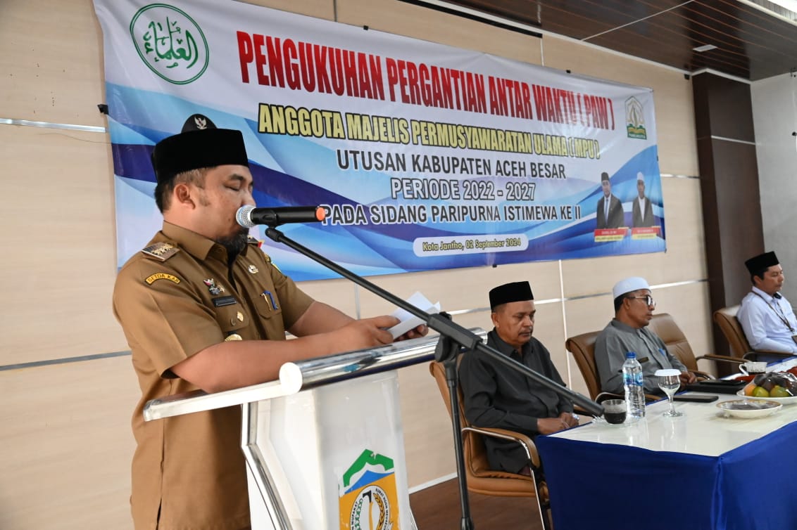 “Atas nama Pemerintah Kabupaten Aceh Besar, saya menyampaikan selamat kepada anggota MPU yang baru saja dikukuhkan, Tgk Junaidi dan Tgk Zulham.