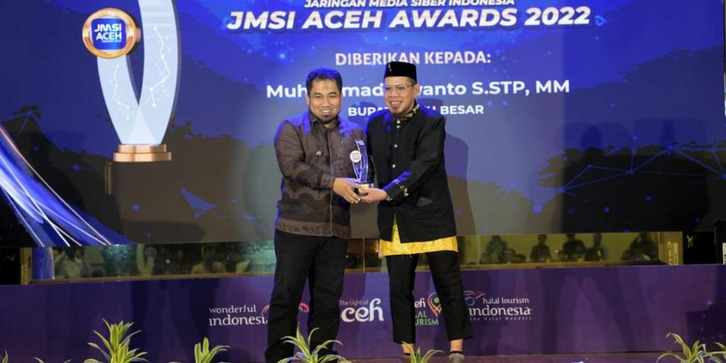 posaceh.com, Banda Aceh – Penjabat (Pj) Bupati Aceh Besar Muhammad Iswanto menerima Anugerah dari Jaringan Media Siber Indonesia (JMSI) Aceh, pada Malam Penganugerahan JMSI Award 2022, yang digelar di Anjong Mon Mata, komplek Meuligoe Gubernur Aceh, Jum’at (11/11/2022).