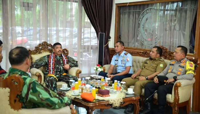 Pj Bupati Aceh Besar Muhammad Iswanto SSTP MM bersilaturahmi dan ramah tamah bersama Komandan Komando Pasukan Gerak Cepat (Dankopasgat) Marsda TNI Yudi Bustami S. Sos berserta rombongan, bertempat di VIP Room Mako Lanud Sultan Iskandar Muda, Blang Bintang, Aceh Besar, Senin (02/09/2024). FOTO/MAMAD