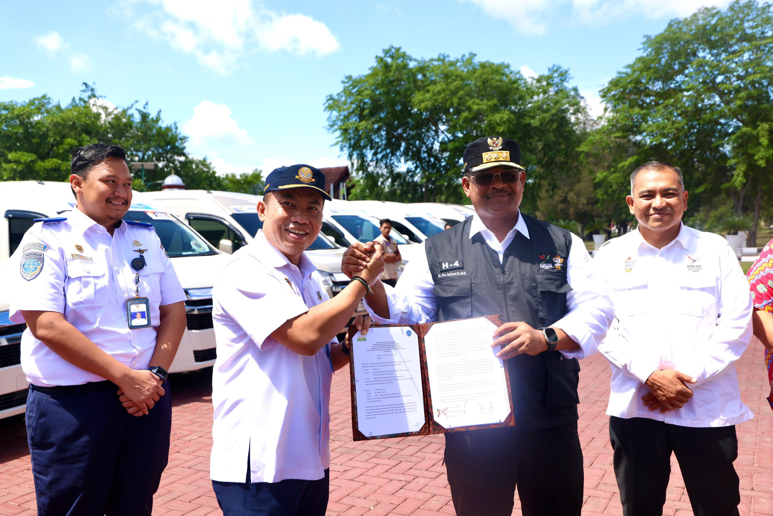 “Terima kasih kepada Kementerian Perhubungan atas dukungannya. Kemarin kami mendapatkan bantuan hotel terapung yaitu di KM Kelud, dan hari ini kami menerima kendaraan operasional. Bantuan ini sangat bermanfaat untuk kebutuhan operasional PB PON dan cabang olahraga,” ujar Dr. Safrizal.