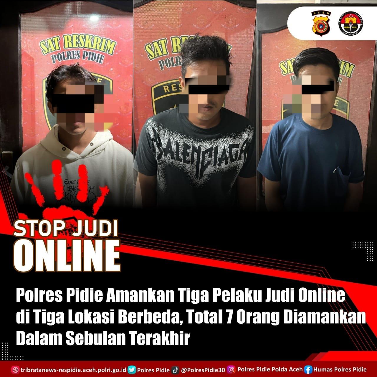 Penangkapan dilakukan di tiga lokasi berbeda dalam wilayah hukum Polres Pidie berdasarkan laporan masyarakat terkait maraknya aktivitas perjudian melalui jaringan internet,” kata Kapolres Pidie AKBP Jaka Mulyana, SIK, MIK melalui Kasat Reskrim AKP Dedy Miswar, S.Sos, MH kepada wartawan, Kamis (29/05/2025).