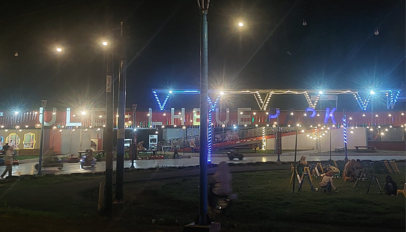 Begitu masuk ke pintu gerbang pantai Ulee Lheue, terlihat satu cafe di bawah jembatan yang dipenuhi dengan lampu menambah semarak pengunjung yang datang untuk menikmati malam sambil minum kopi dan lainnya.