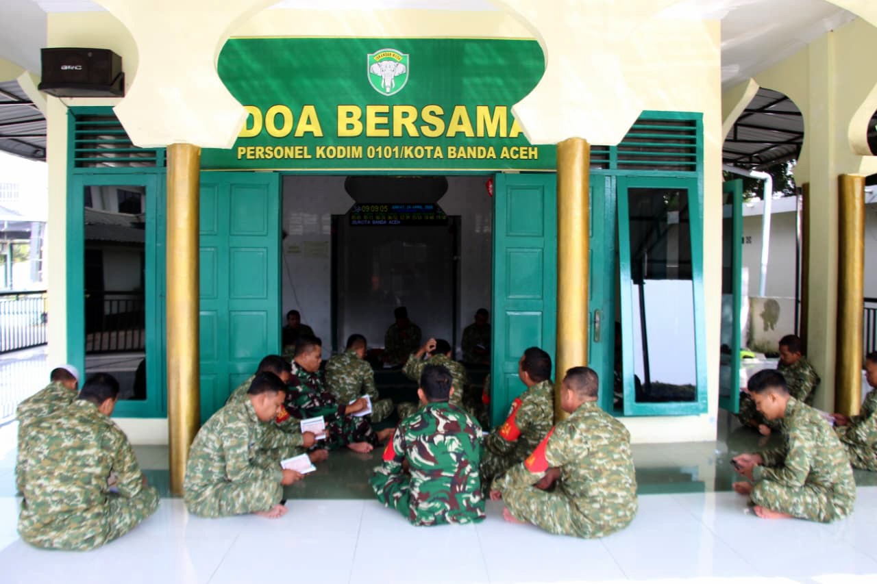 Kegiatan doa bersama tersebut dilaksanakan pada Jumat (24/04/2026) di Musallah Kodim 0101/KBA setelah pelaksanaan sholat Jumat, yang diikuti oleh personel Kodim 0101/Kota Banda Aceh dengan penuh khidmat dan kekhusyukan. Dalam suasana yang sarat makna spiritual, seluruh peserta memanjatkan doa kepada Allah SWT agar Praka Riko Pramudia diberikan kemudahan dan kelancaran dalam menjalani proses medis, serta segera diberikan kesembuhan dan dapat kembali beraktivitas seperti sediakala.