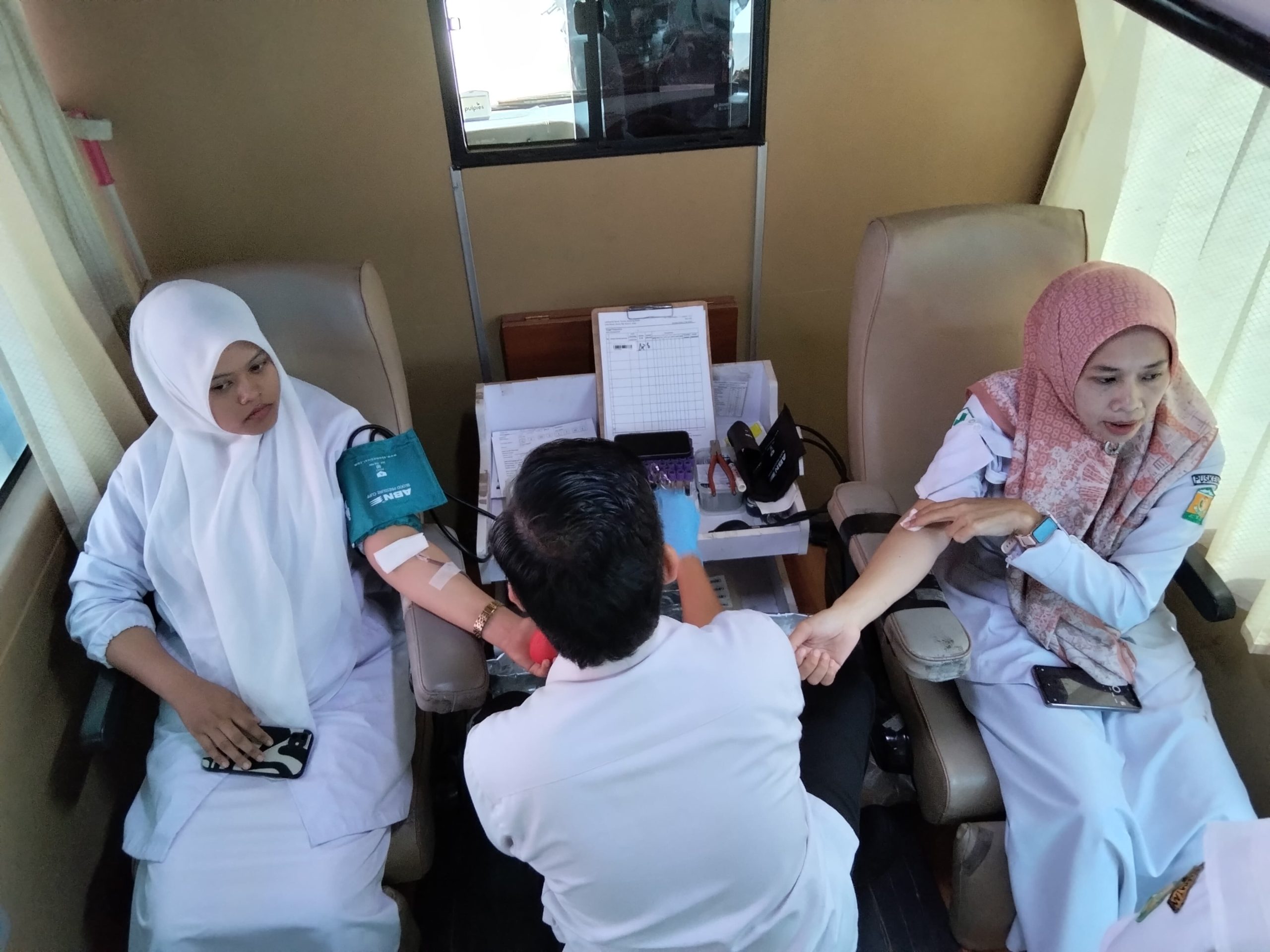 Pegawai dan tenaga kesehatan melakukan donor darah di Halaman Puskesmas Indrapuri, Selasa (7/4/2026). FOTO/l ROJA