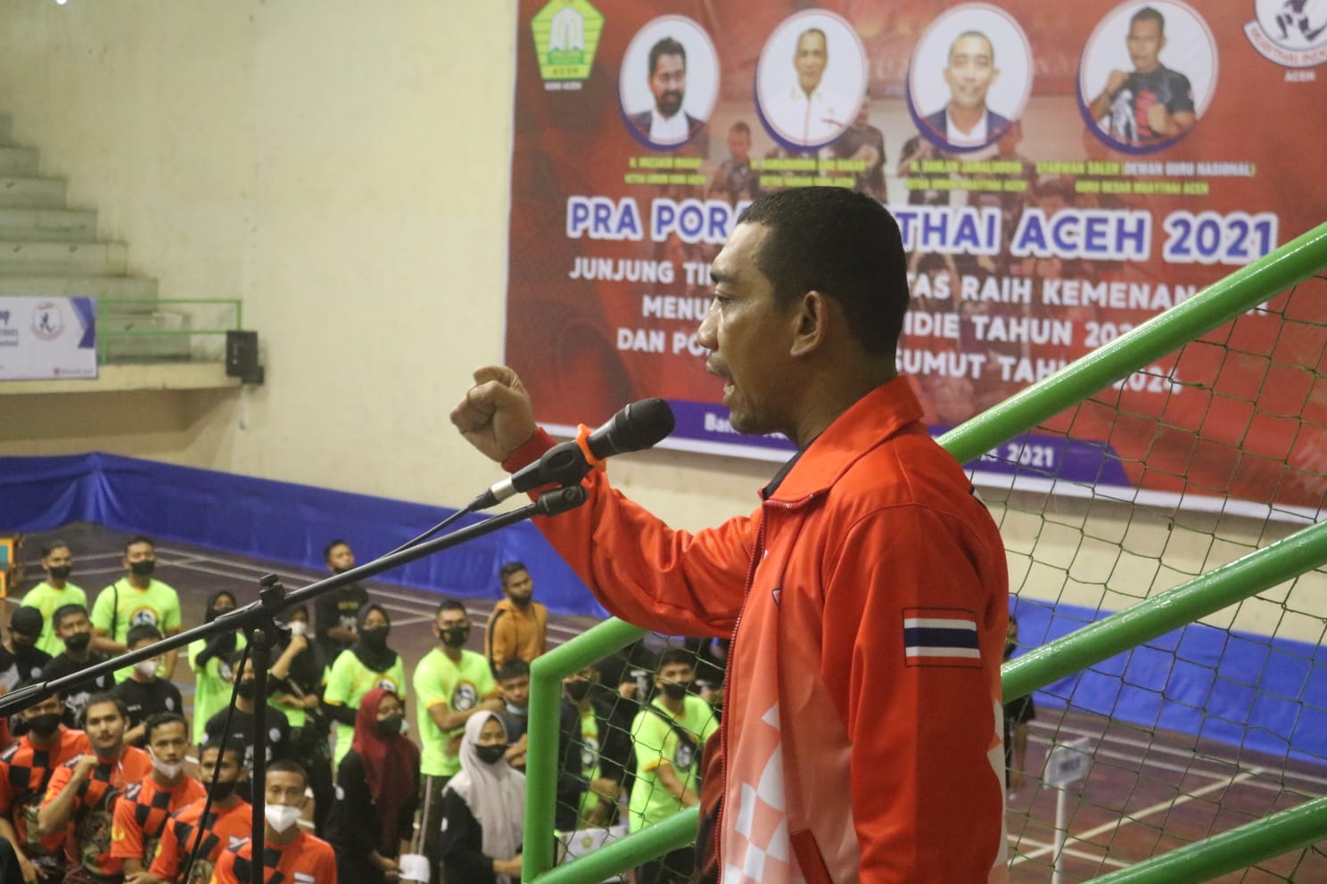 Sementara itu, Ketua Umum Muythai Aceh, H. Dahlan Jamaluddin, SIP dalam sambutannya meminta agar semangat dan kesuksesan seperti yang telah diraih pada ajang PON XX Papua beberapa waktu lalu, juga harus ditunjukkan pada Pra-PORA kali ini.