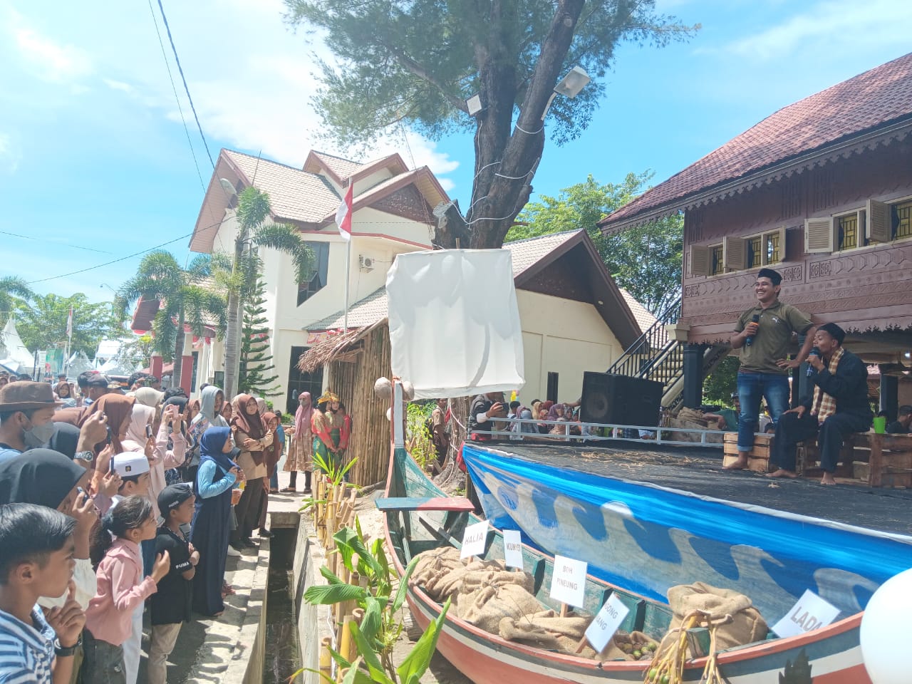 posaceh.com, Banda Aceh – Sanggar seni Ikatan Pemuda Pelajar dan Mahasiswa Kuta Cot Glie (IPPERMATA) yang menampilkan atraksi teaterikal Amad Rahmanyang yang merupakan cerita rakyat pemuda yang durhaka dengan ibunya menghipnotis pengunjung Pekan Kebudayaan Aceh (PKA) 8 yang hadir di anjungan Aceh Besar, di Komplek Taman Ratu Safiatuddin, Banda Aceh, Sabtu (11/11/2023).