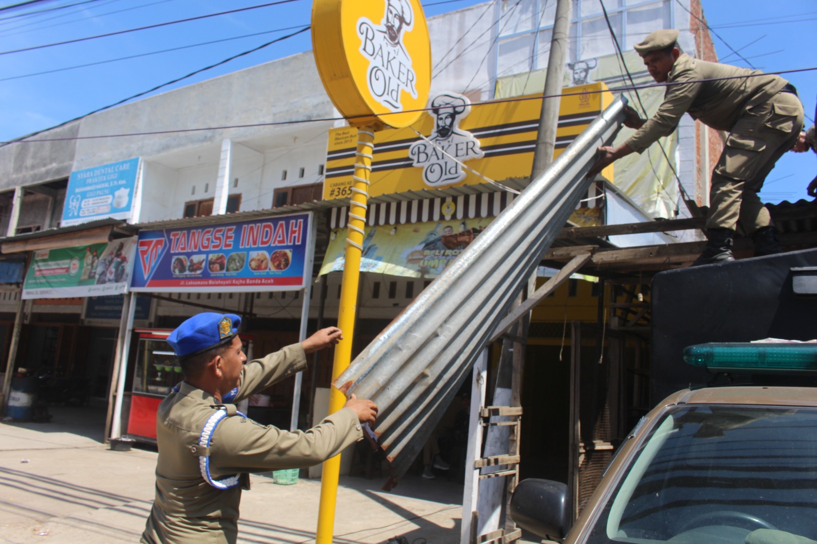 “Petugas memotong kanopi yang melebihi batas, mengamankan material hasil bongkaran, serta membersihkan sisa-sisa material di lokasi,” kata Muhajir.