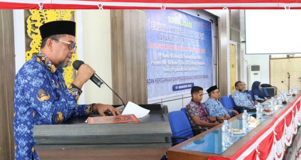 Hal itu disampaikan Sekda Pidie, dalam sambutan yang dibacakan oleh Asisten Bidang Ekonomi dan Pembangunan, Ir. Tarmizi, dalam acara Sosialisasi Pembinaan Kinerja dan Disiplin ASN di Lingkungan Pemerintah Kabupaten Pidie, Kamis (1/12/2022).
