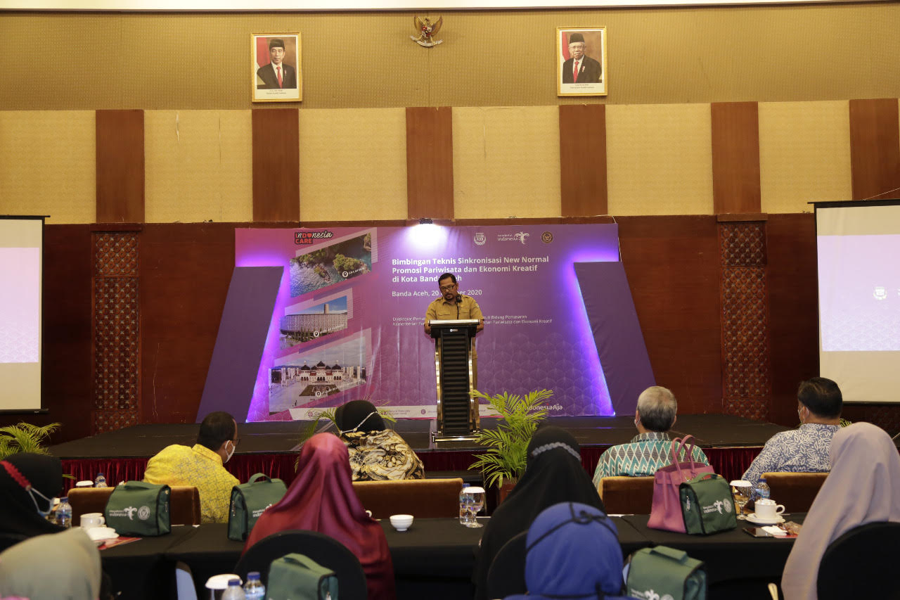“Tetap memerhatikan protokol kesehatan, sehingga sektor pariwisata tetap berjalan meskipun di tengah pandemi,” kata Iskandar Kepala Dinas Pariwisata Kota Banda Aceh dihadapan peserta Bimbingan Teknis Sinkronisasi New Normal Promosi Pariwisata dan Ekonomi Kreatif di Hotel Hermes, Kota Banda Aceh, Selasa (20/10/20)