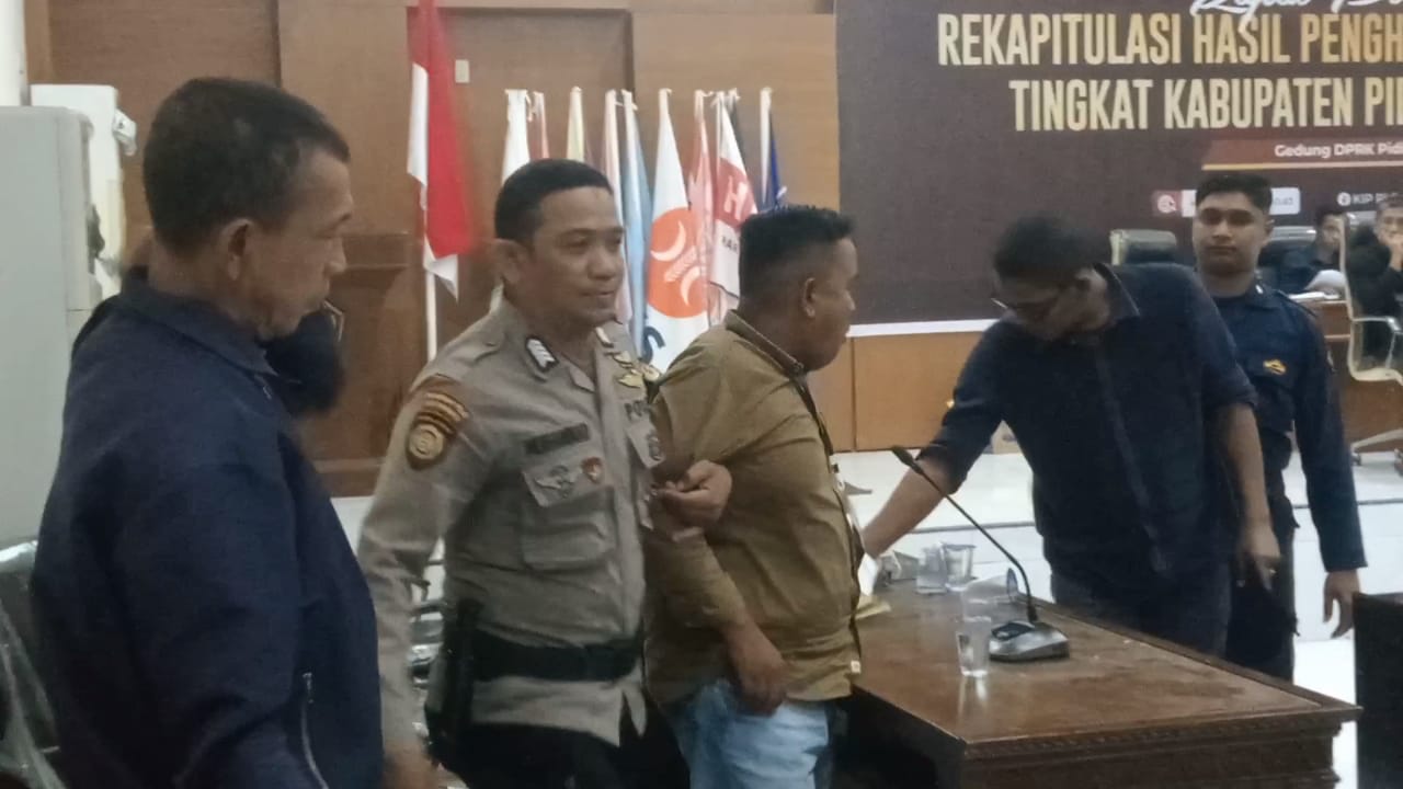posaceh.com, Sigli – Akibat suasana tegang, Panitia Pemilihan Kecamatan (PPK) Kembang Tanjong, Kabupaten Pidie, diamankan oleh Polisi dalam ruang rapat pleno terbuka suara hasil Pemilu 2024 tingkat Kabupaten yang di gelar di Gedung Dewan Perwakilan Rakyat (DPRK) Pidie, Selasa (5/3/2024) malam.