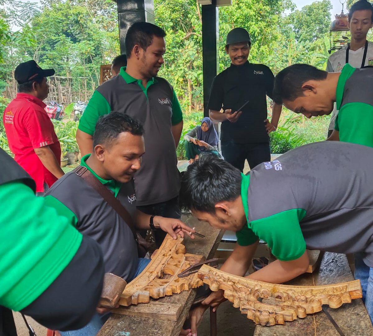 posaceh.com, Jawa Tengah – Sedikitnya sepuluh seniman ukir Aceh yang terdiri dari praktisi ukir, pengajar ilmu ukir di sekolah menengah, pengusaha ukir dan staf pengajar kriya di Institut Seni Budaya Indonesia Aceh mengunjungi desa wisata dan desa sembada ukir yang ada di Jepara yaitu Desa Petekeyan, Tahunan, Kabupaten Jepara-Jawa Tengah, sebagai lokasi melaksanakan kegiatan benchmarking sejak tanggal 22 sampai dengan 24 Juli 2022.