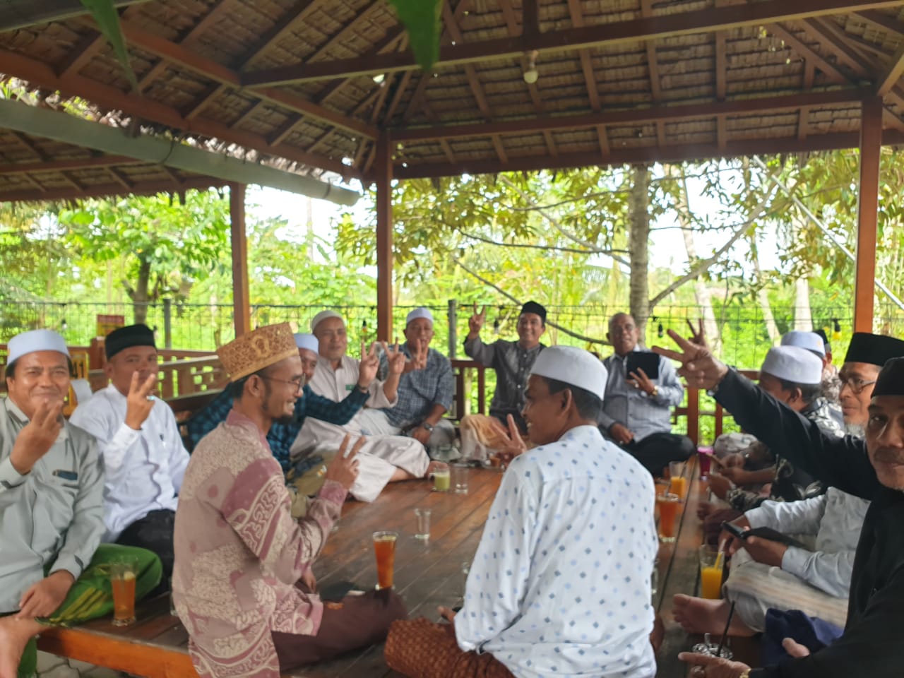 Sejumlah Pimpinan Dayah di Aceh lakukan pertemuan silaturrahmi dengan Tgk H Muhammad Nur MSi selaku jubir pemenangan Mualem - Dek Fadh Aceh di dayah kopi Aceh Utara, Sabtu (5/10/2024). FOTO/ KIRIMAN TARMIZI AGE