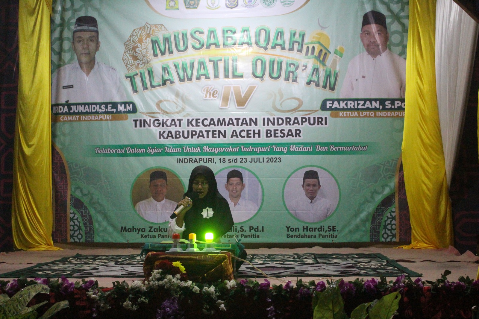 MTQ yang akan berlangsung selama 6 hari mulai 18 – 23 Juli 2023 memperlombakan 15 cabang. Camat Indrapuri, Irda Junaidi SE MM dalam sambutannya menyampaikan rasa bangganya atas pelaksanaan MTQ IV ini berkat keras panitia dan LPTQ kecamatan.