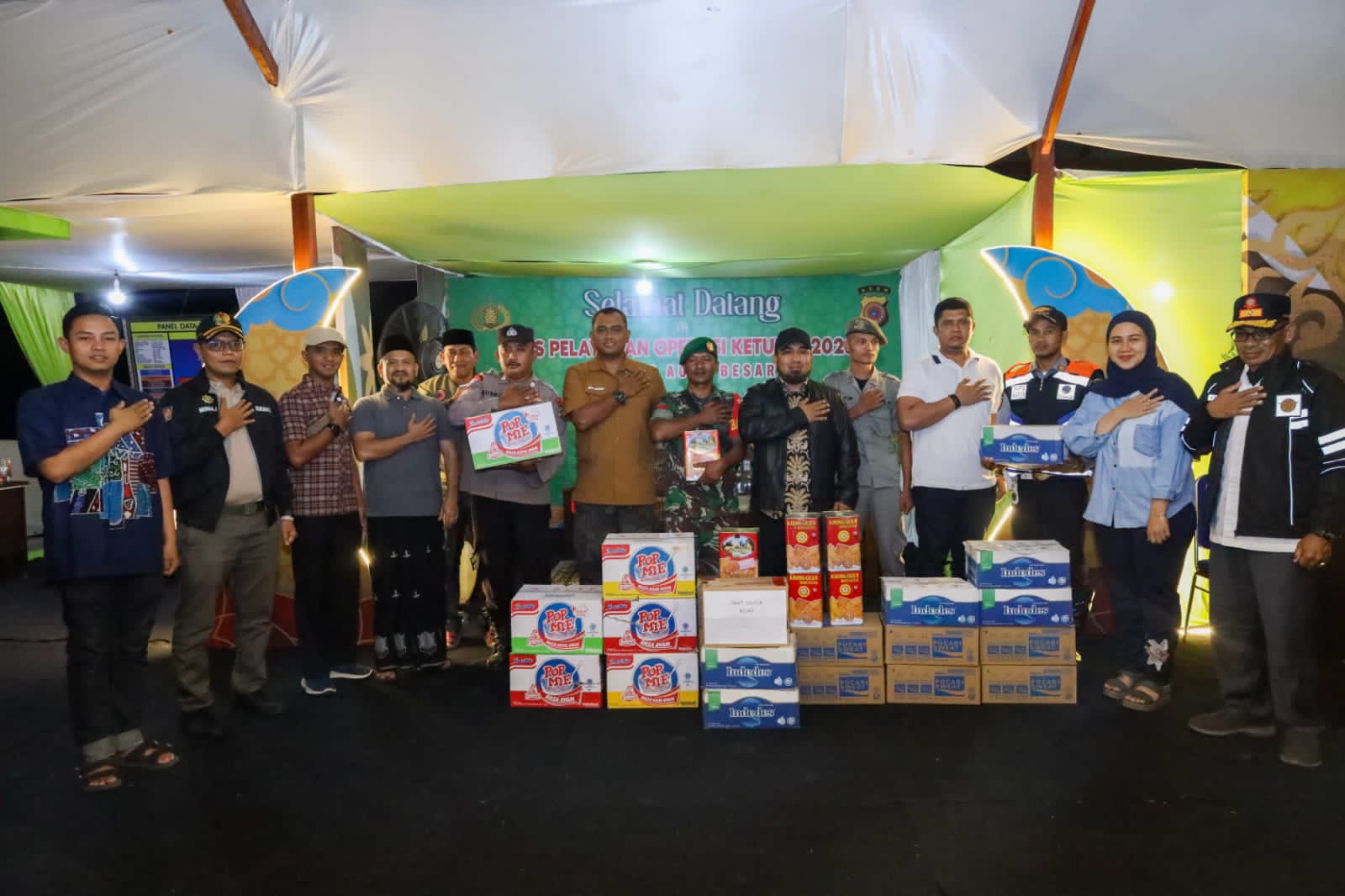 Pj Bupati Aceh Besar Muhammad Iswanto, S.STP MM bersama Forkopimda menyerahkan logistik kepada anggota Polri yang berjaga selama Mudik Lebaran, di Pos Yan Aneuk Galong, Kecamatan Suka Makmur, Kamis (20/04/2023) malam. FOTO/ PROKOPIM PEMKAB ACEH BESAR