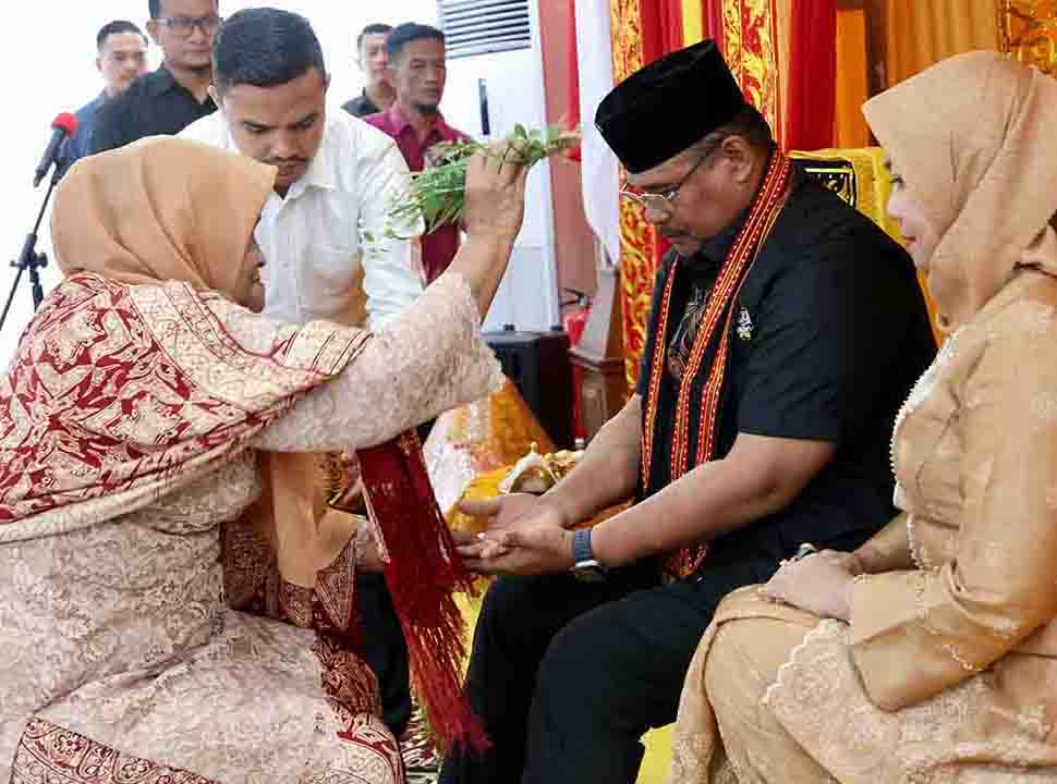 posaceh.com, Kota Jantho – “I joek peng (teumeutuk) le mak,” (Diberi uang oleh Bunda) sepenggal kalimat ini memecah kesenduan suasana Peusijuek penyambutan kedatangan Penjabat Gubernur Aceh Safrizal, di ruang adat VIP Bandara Internasional Sultan Iskandar Muda, Sabtu (24/8/2024).