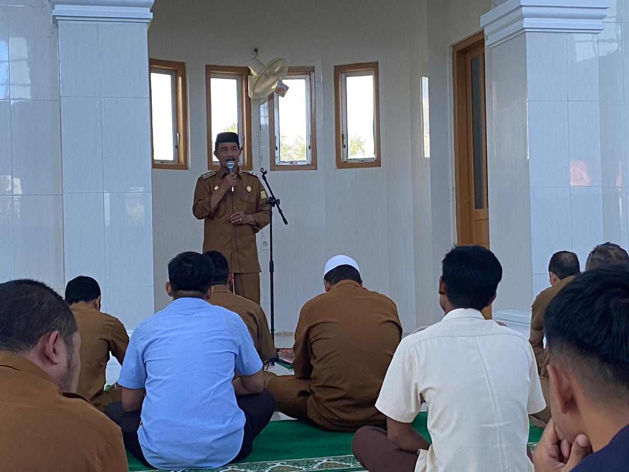 Wakil Bupati Aceh Besar Drs H Syukri menyampaikan Kuliah Tujuh Menit (Kultum) di Mushalla Ar-Rahman komplek Kantor Bupati Aceh Besar, Kota Jantho, Senin (3/3/2025). FOTO/ PROKOPIM PEMKAB ACEH BESAR