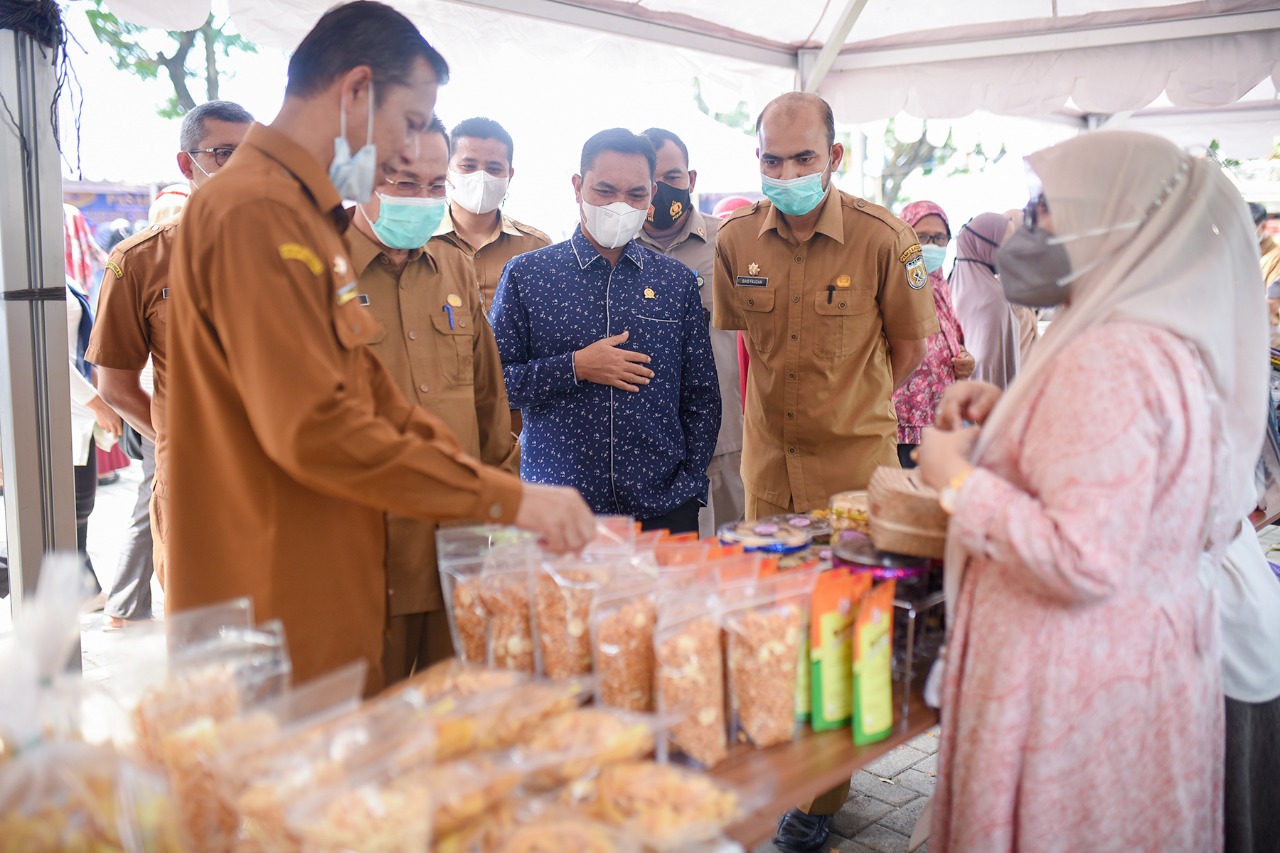 FOTO/ HUMAS DPRK BANDA ACEH Wakil Ketua DPRK Banda Aceh Isnaini Husda melihat langsung pasar murah Pemko Banda Aceh yang digelar di Halaman Dinas Koperasi UKM dan Perdagangan Kota Banda Aceh, Senin (3/5/2021).