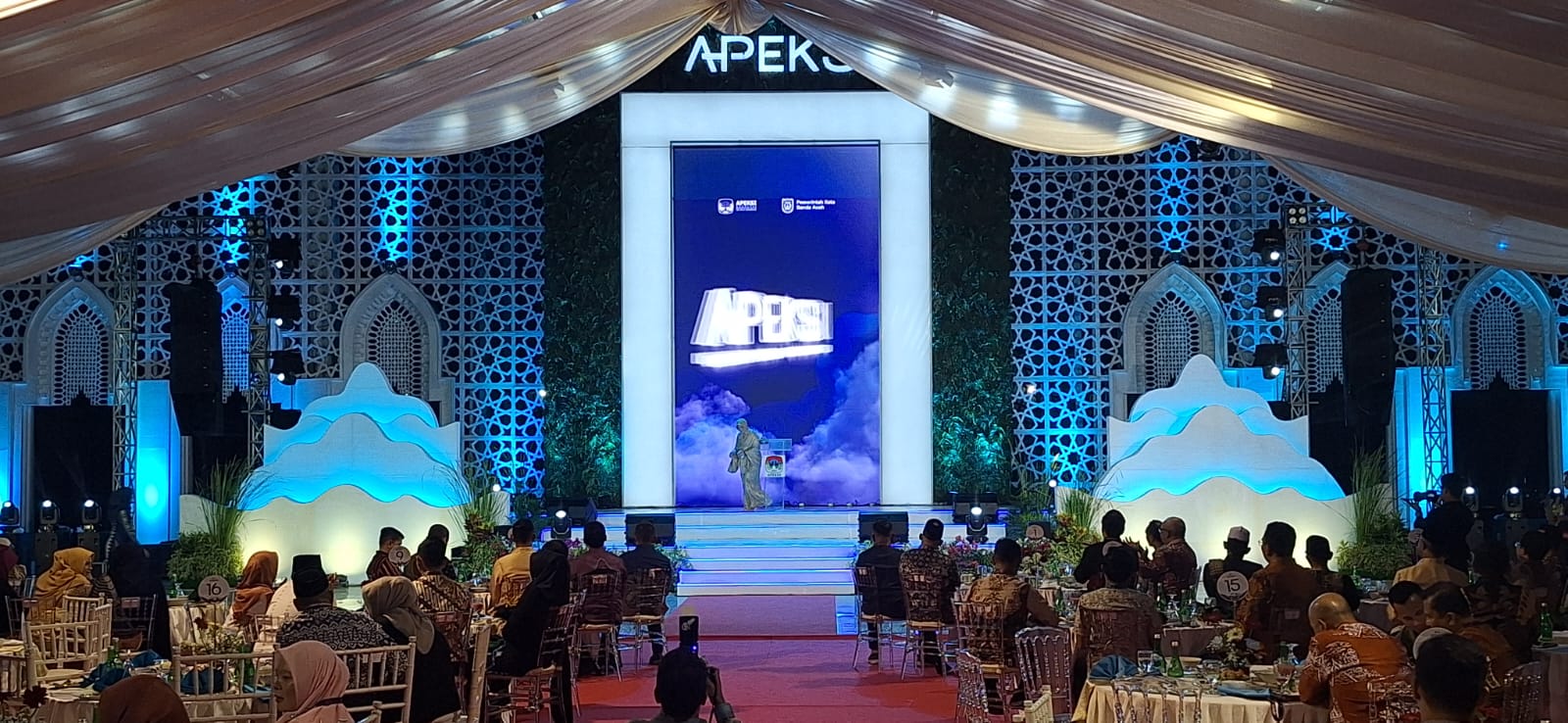 Suasana Welcome Dinner tuan rumah raker Apeksi Pemko Banda Aceh, di Gedung Meuseuraya Aceh, Banda Aceh, Minggu (19/4/2026) malam. FOTO/ ABDUL HADI