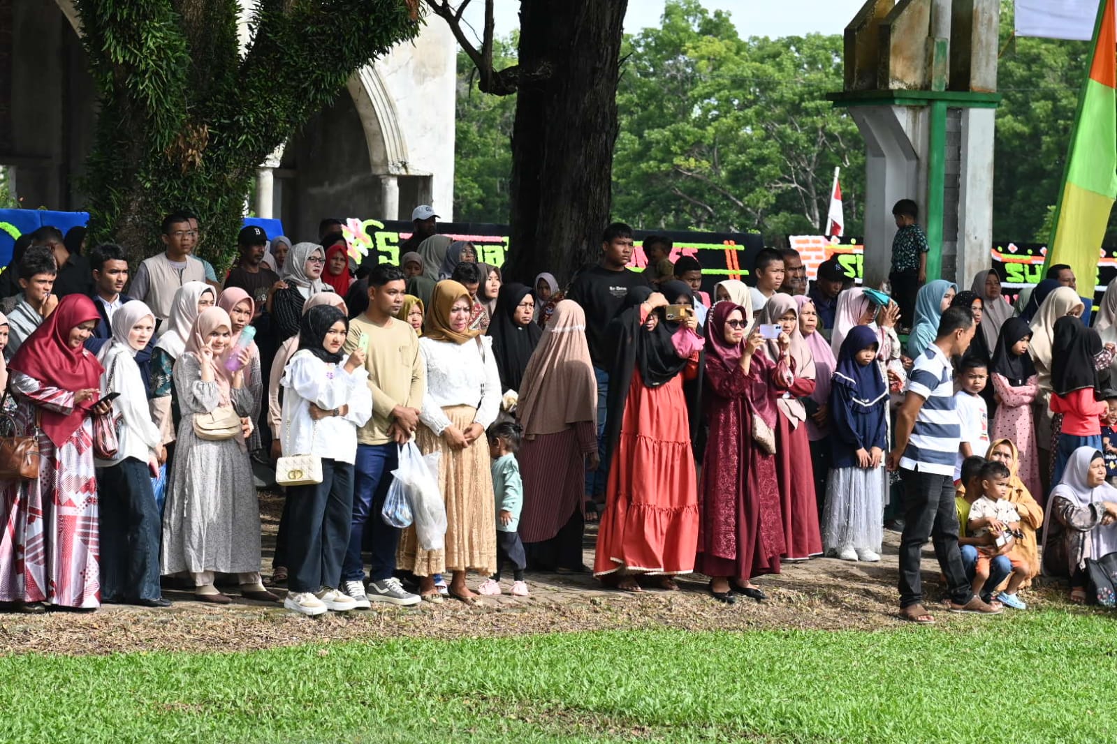 Warga Kota Jantho menyaksi upacara peringatan HUT ke 79 RI di Lapangan Bungong Jeumpa, Kota Jantho, Sabtu (17/8/2024). FOTO/ BEDU SAINI